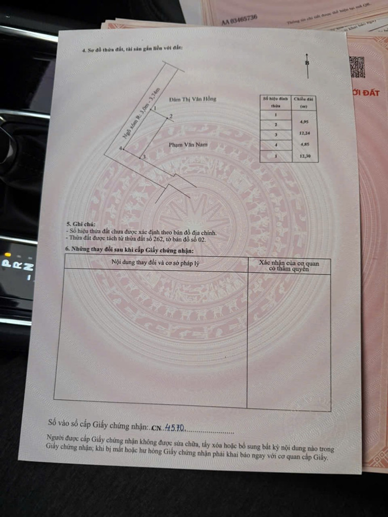 -Đường trước đất: ngõ trải nhựa 3.5 – 4.5m, chỉ sau 1 nhà ra trục thôn