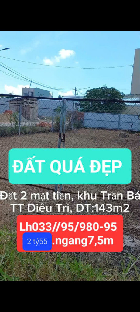 Quý vị đang xem nội dung tin rao "Lô góc VIP143m2(2tỷ6) ngang 7,5m.HOÀNG LONG DIÊU TRÌ ,khu TRẦN BÁ xã Tuy Phước, Gia Lai" -