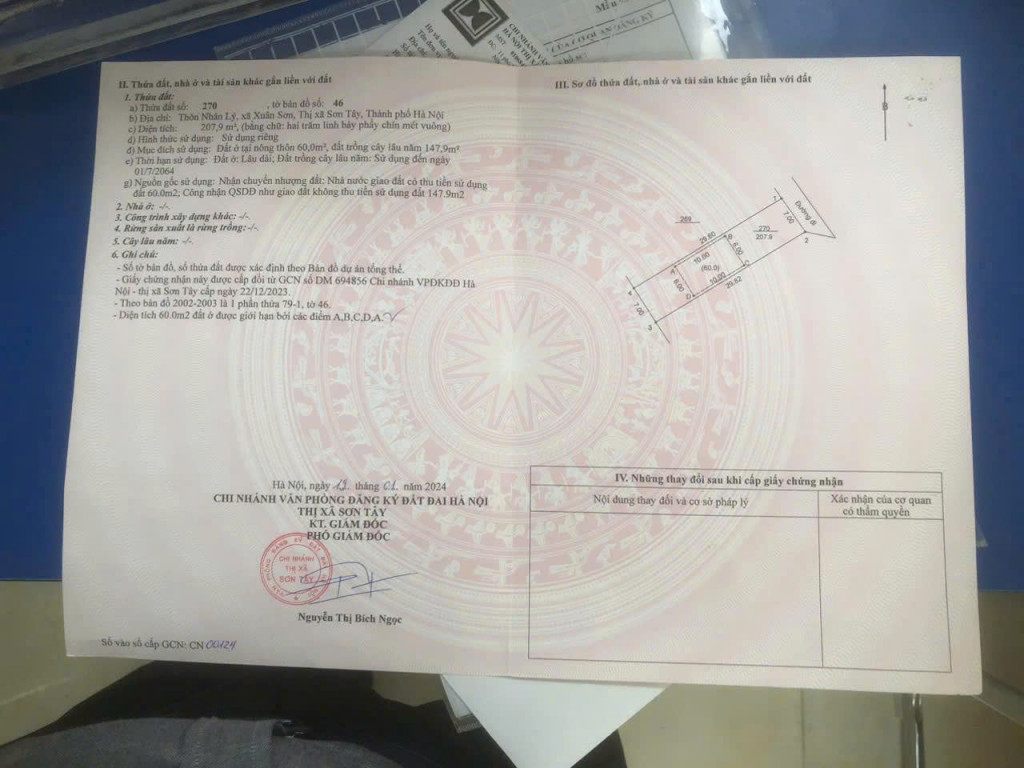 - Đất thuộc: Nhân Lý, Xuân Sơn, Sơn Tây, Hà Nội