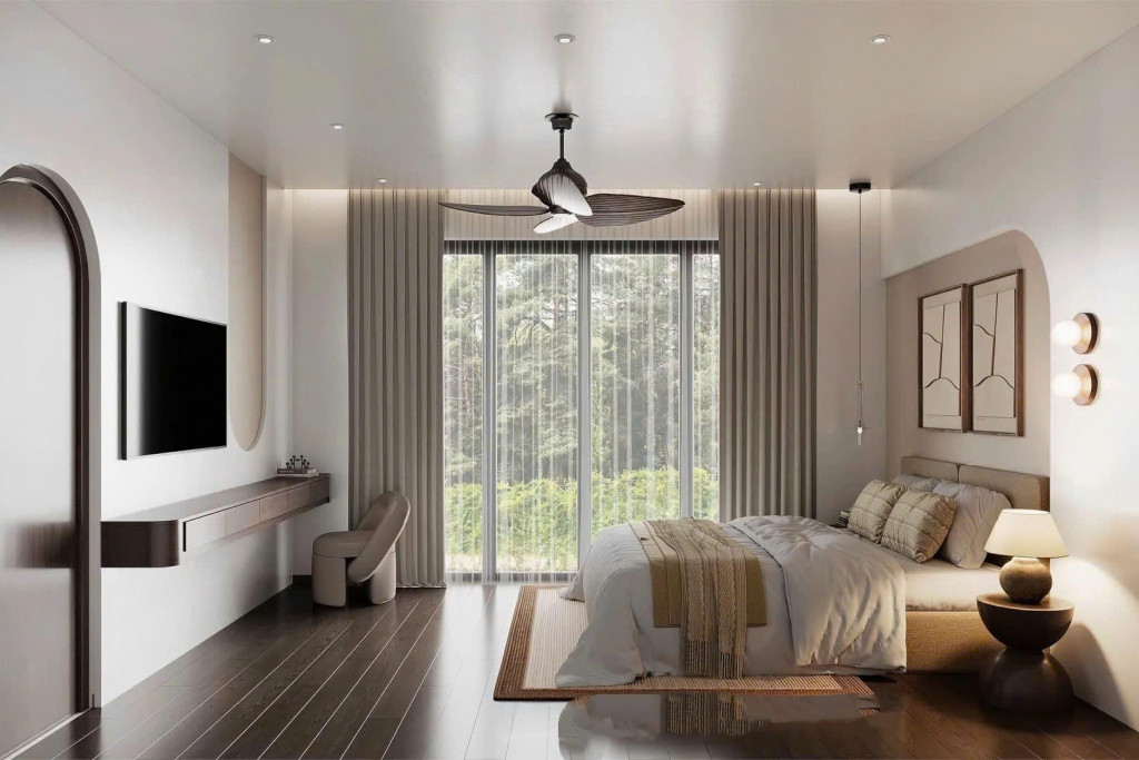 • Phòng Ngủ Master View Rừng Xanh: Phòng ngủ chính rộng rãi, sở hữu cửa kính lớn nhìn ra không gian cây xanh bên ngoài, mang lại cảm giác nghỉ dưỡng, yên bình mỗi ngày.