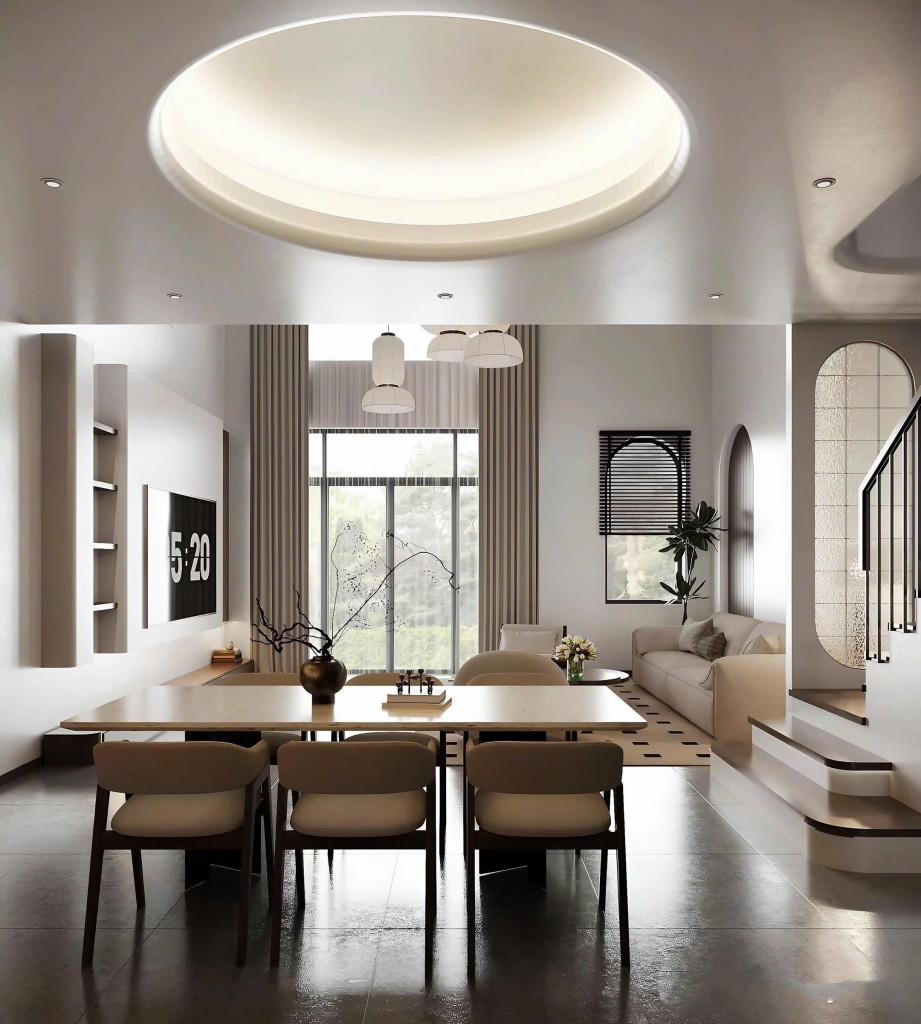 • Thiết Kế Độc Đáo & Cao Cấp: Nội thất được đầu tư kỹ lưỡng, mang phong cách hiện đại, tối giản nhưng không kém phần sang trọng. Các chi tiết cong mềm mại (như cửa vòm, tủ quần áo, cổng) tạo nên sự hài hòa, tinh tế và ấm cúng.