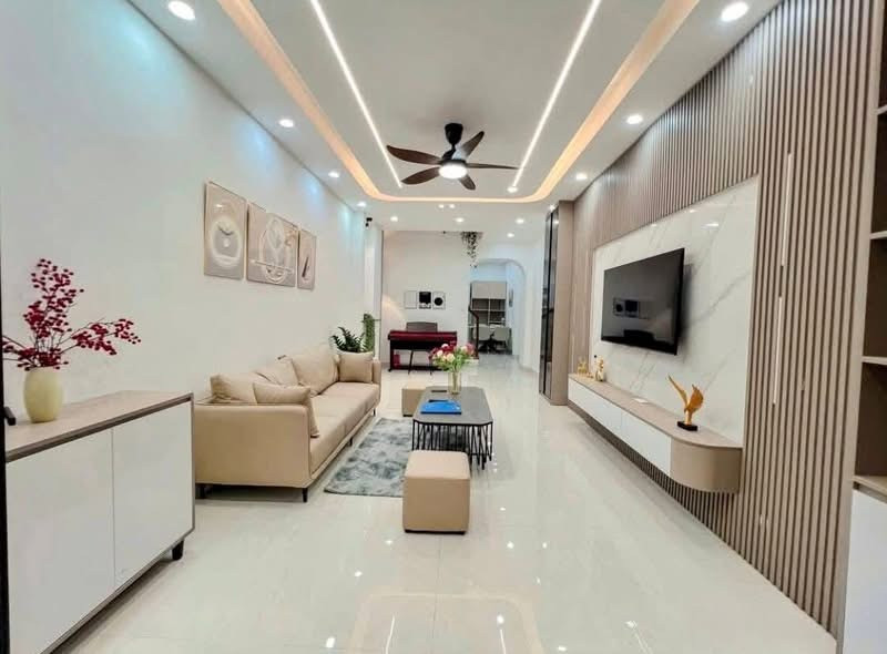 • Tầng lửng: Phòng khách – bếp sang xịn