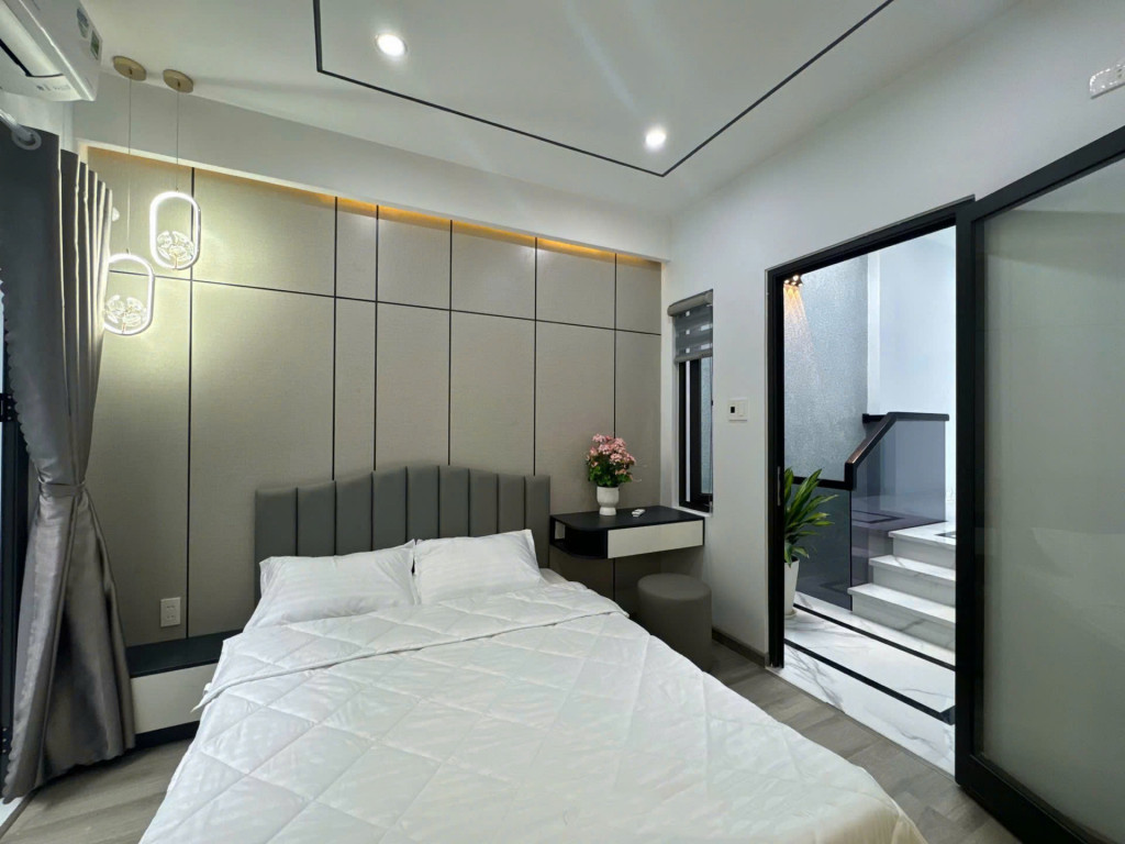 KẾT CẤU: 1 trệt 2 lầu, 3 phòng ngủ, 4 toilet, phòng khách, bếp, phòng thờ, sân thượng, sân trước 5m đậu xe hơi, sân sau 10m, hẻm xe hơi ra vào thoải mái, tặng full nội thất.