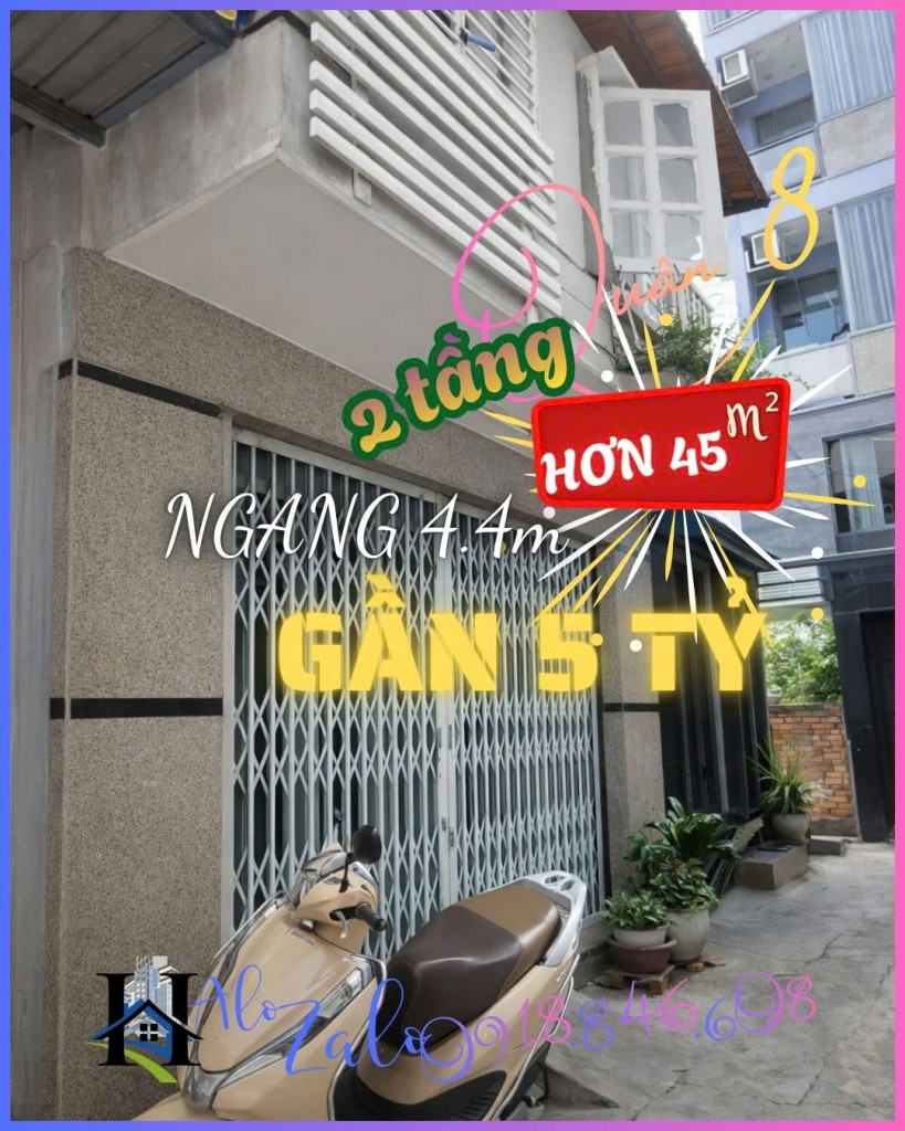 NHÀ NGANG 4.4m Q.8, TO HƠN 45m², GẦN 5 TỶ, CÁCH MẶT TIỀN 50m