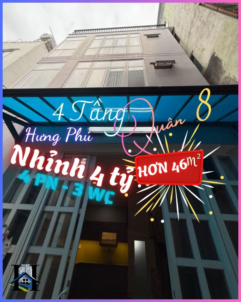 NHÀ NGANG HIẾM 4,7m, HƠN 46m², 4 TẦNG, NHỈNH 4 TỶ, TẶNG NỘI THẤT ML, GẦN MẶT TIỀN HƯNG PHÚ Q.8