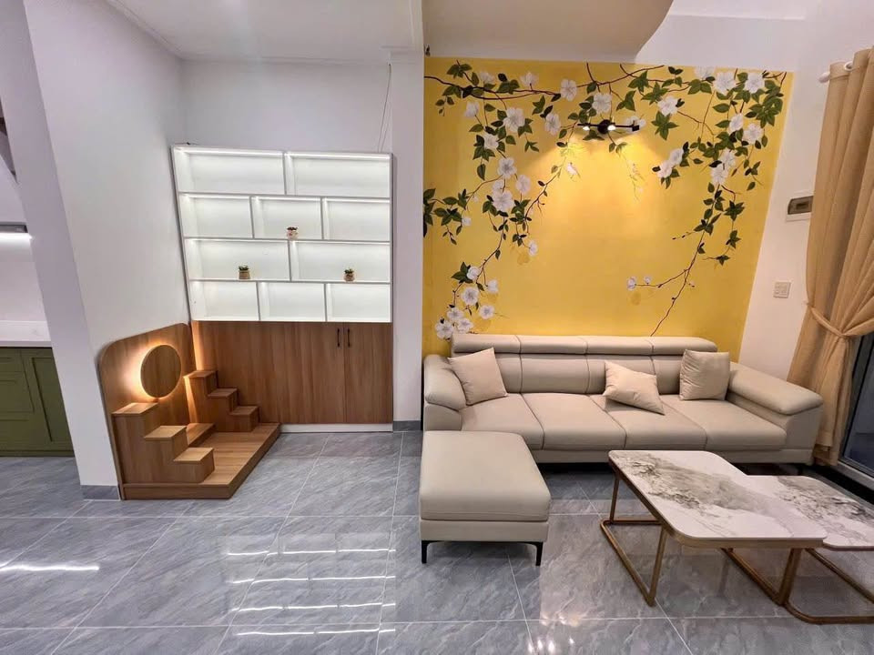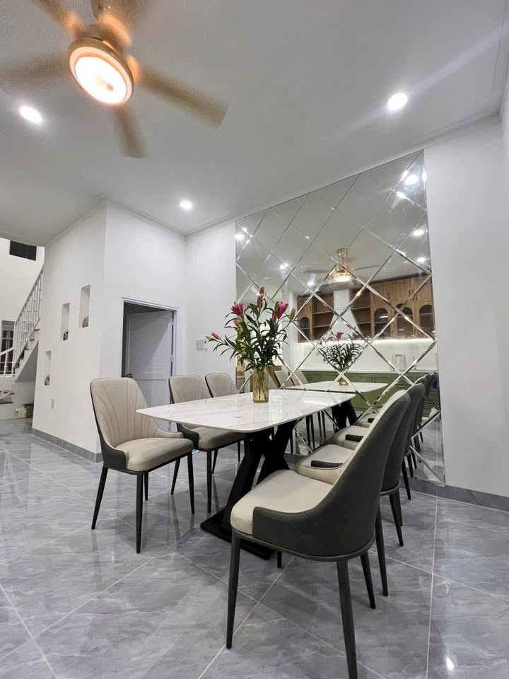 Căn nhà thiết kế 1 trệt 1 lầu kiên cố, không gian rộng rãi, bố trí hợp lý, phù hợp gia đình trẻ hoặc người lớn tuổi muốn an cư lâu dài. Phòng khách thoáng mát, bếp rộng, phòng ngủ riêng tư, nhà sáng và đón gió tự nhiên.