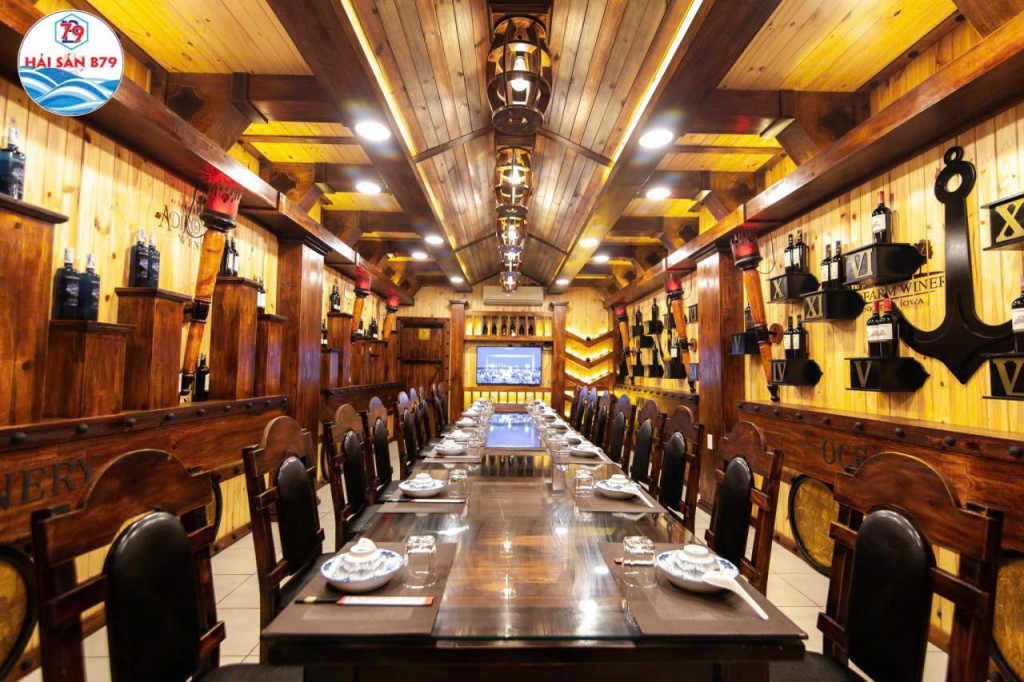• Không gian thiết kế gỗ sang trọng, phù hợp mô hình nhà hàng cao cấp – tiếp khách – tiệc doanh nghiệp