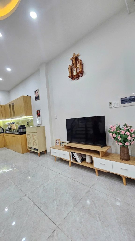 +Nhà mới xây theo phong cách hiện đại có 1 trệt, 1 lầu, 3PN, 3WC ,ôtô ngủ trong nhà .