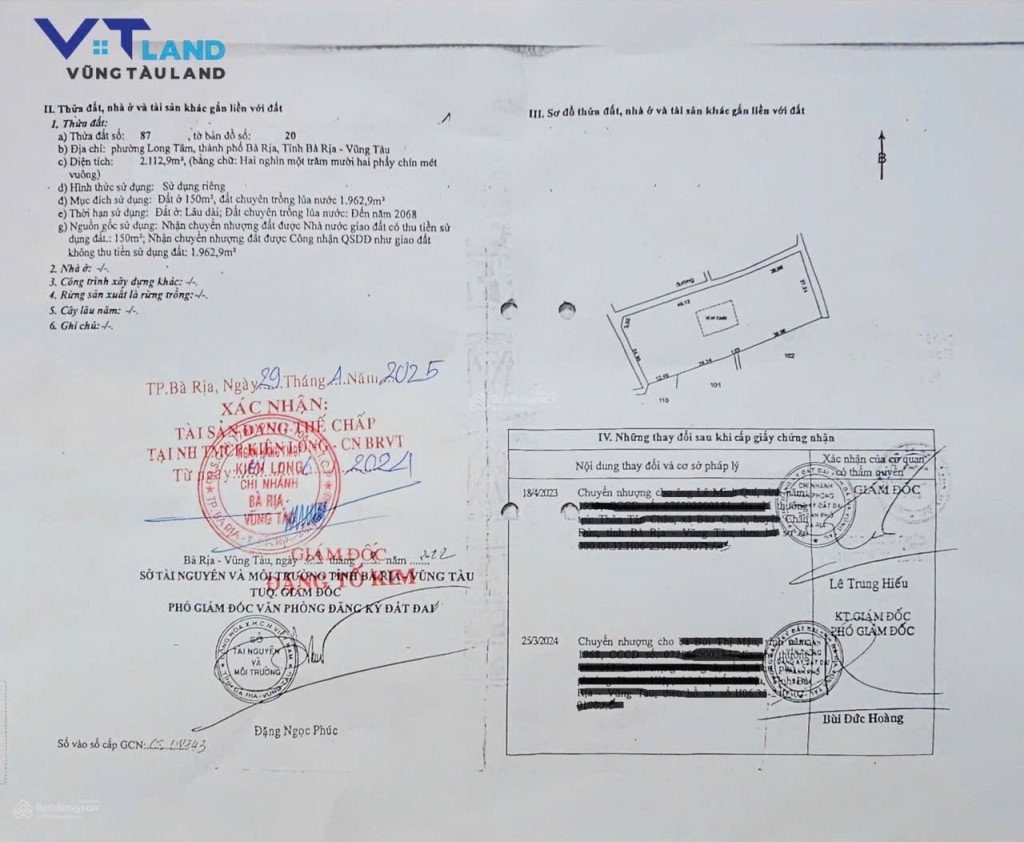 – Địa chỉ: tại đường nội bộ khu dân cư, Phường Long Tâm, TP. Bà Rịa, tỉnh Bà Rịa – Vũng Tàu, dân cư hiện hữu, tiềm năng tăng giá cao