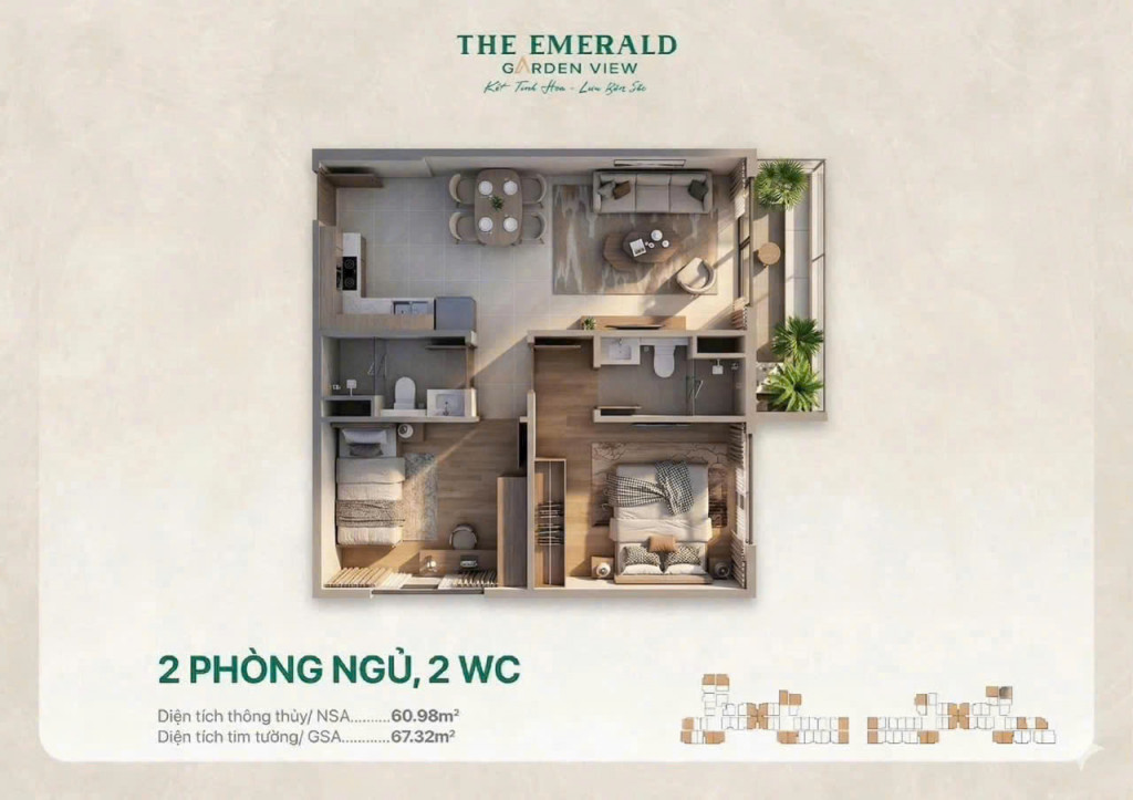 THE EMERALD GARDEN VIEW – CĂN HỘ 2PN 2WC, CHỈ TỪ 9 TRIỆU/THÁNG, KHÔNG CẦN VAY
