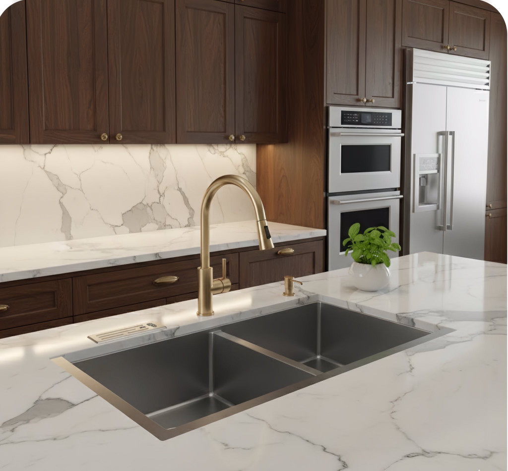 👉 Với bếp nhỏ, chậu đơn hoặc chậu có kích thước tối ưu vừa đủ sẽ giữ được không gian làm việc rộng rãi hơn, giúp lưu trữ đồ, sơ chế thực phẩm, và di chuyển trong bếp thoải mái hơn – đúng như các tiêu chí nên ưu tiên khi thiết kế.