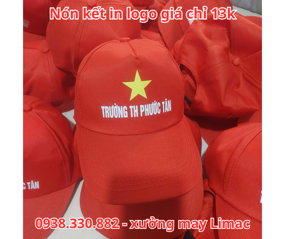 Đặt in nón kết đỏ logo trường trung học Phước Tân