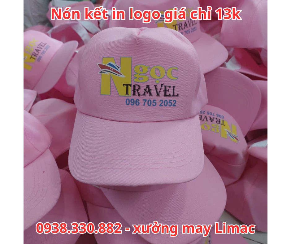 Địa chỉ in nón kết hồng logo Ngọc Travel