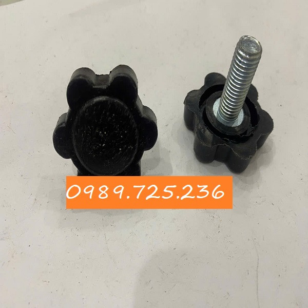 Sản phẩm gồm thanh ren M10 chắc khỏe, đế nhựa hoặc đế cao su chống trượt, cùng núm vặn hoa 6 cánh dễ cầm nắm, phù hợp cho nhiều thiết bị, máy móc, bàn ghế công nghiệp, giá kệ và các sản phẩm cơ khí.