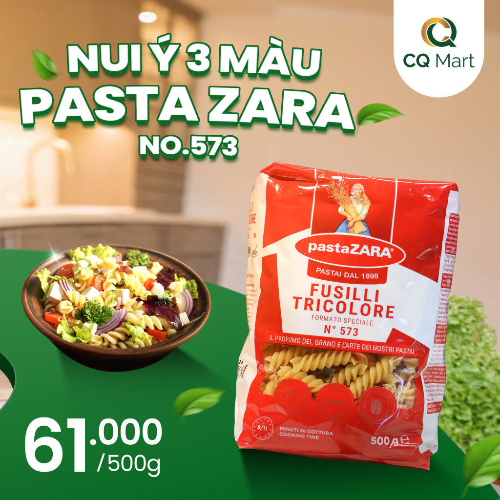 Nui Ý 3 màu No.573 Pasta Zara hiện đang được phân phối chính hãng tại CQ Mart, giúp người tiêu dùng Việt dễ dàng tiếp cận với hương vị pasta chuẩn châu Âu ngay trong gian bếp của mình.