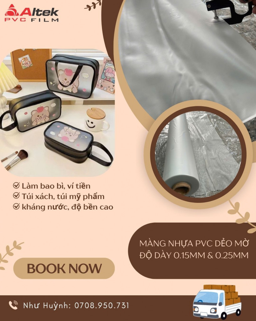 nhựa mờ dẻo may túi đựng mỹ phẩm tại hà nội