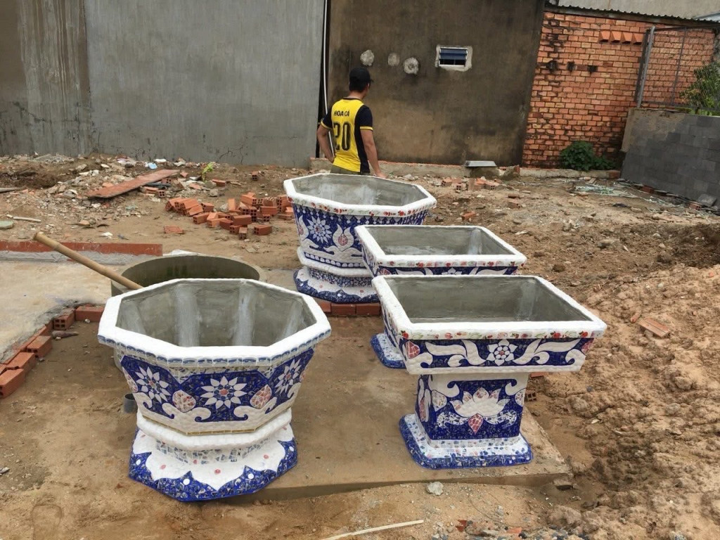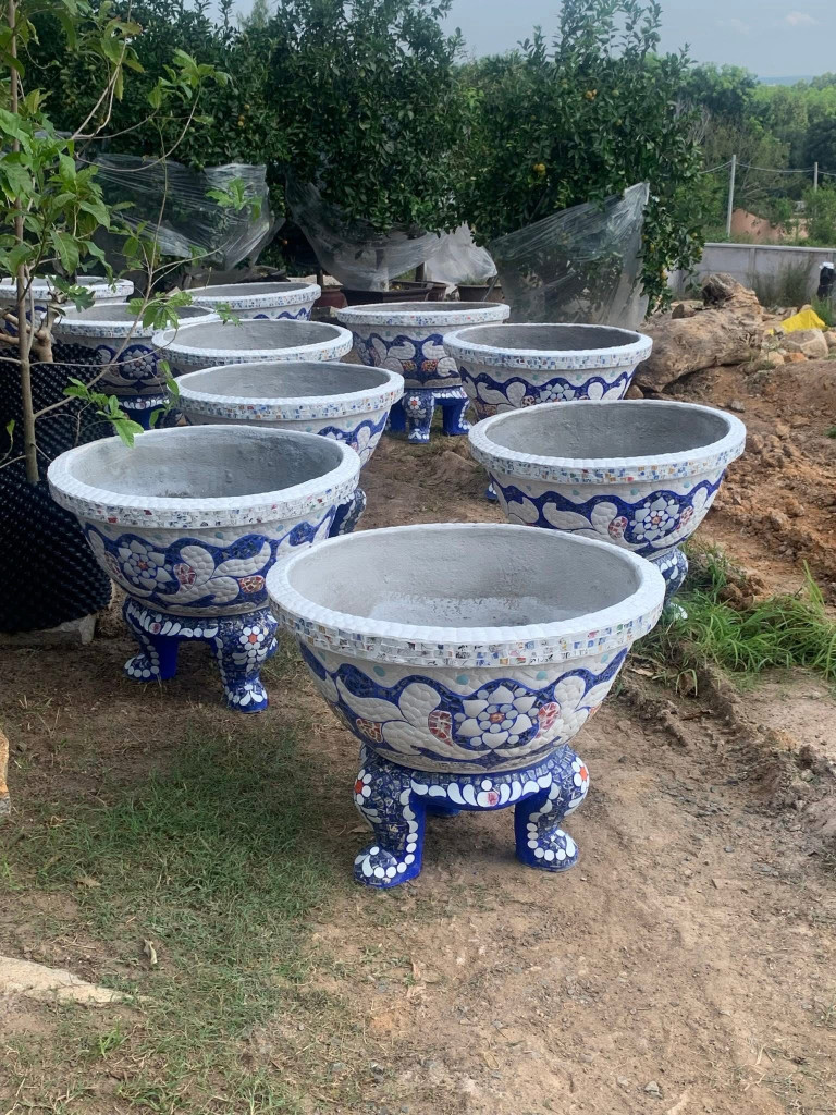 Chậu đắp tay cẩn miểng chén dĩa, thủ công mỹ nghệ Thủ Đức - Tphcm