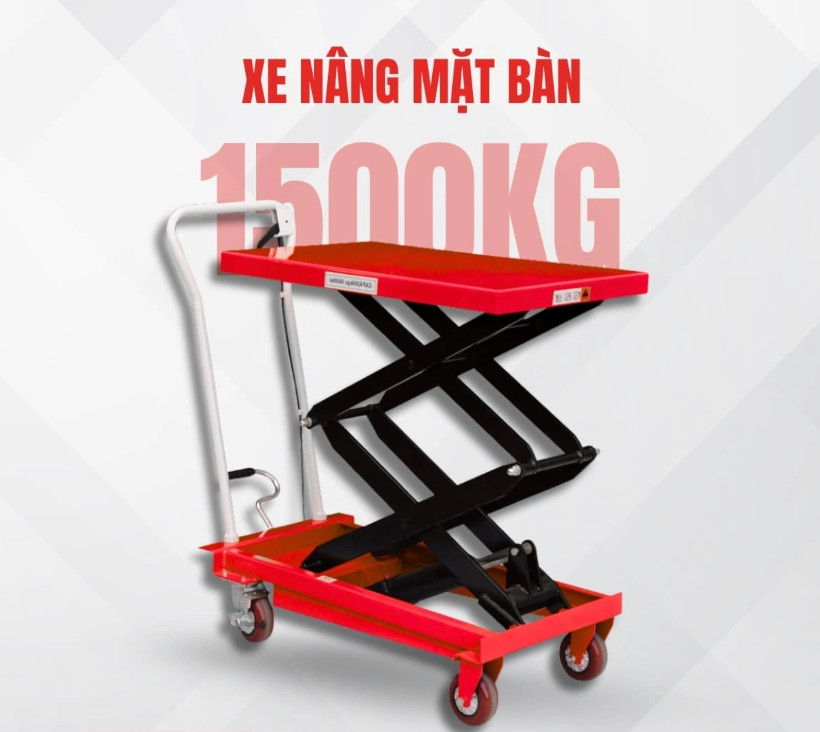 Xe nâng mặt bàn 1500kg: Linh hoạt, bền bỉ, giá hợp lý, nâng hàng không theo chuẩn pallet và đảm bảo an toàn cao.