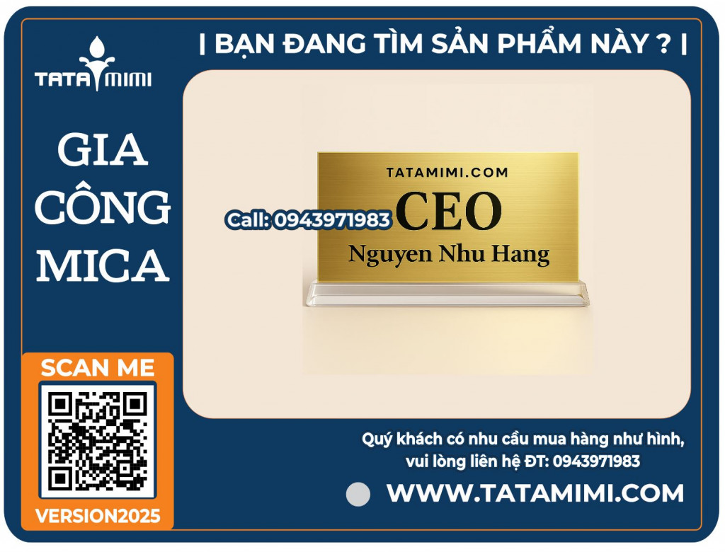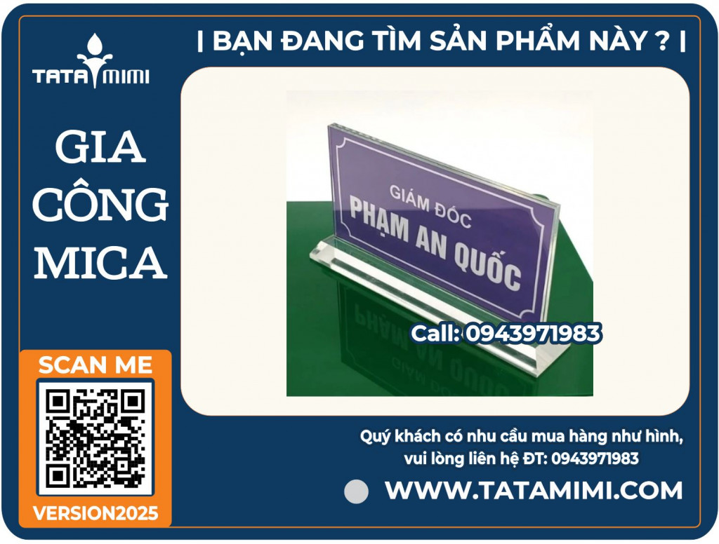 👉 Đừng bỏ qua bảng tên chức danh mica để bàn – sản phẩm chuyên dùng trong phòng họp, quầy lễ tân, bàn làm việc lãnh đạo.