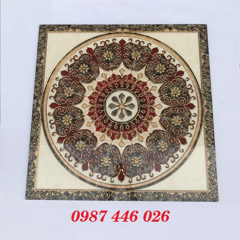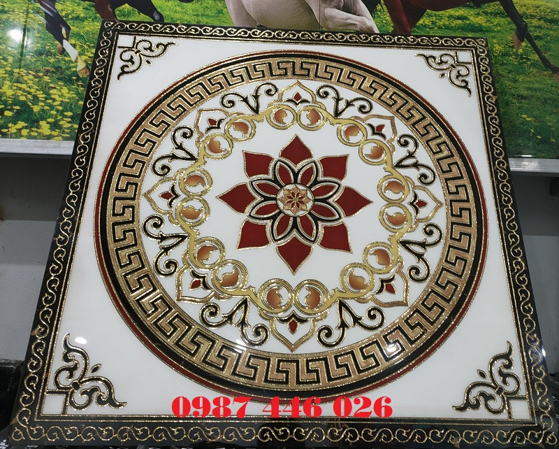 - Chất liệu: Gạch granite mặt men vi tinh khắc vàng