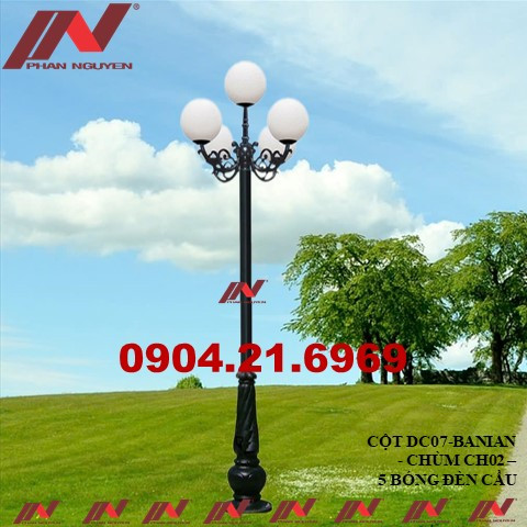 - Cột đèn sân vườn làm bằng gang như: cột dc02, dc06, dc07,...
