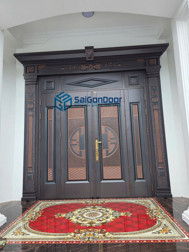 Tiếp tục hoàn thiện một công trình với mẫu cửa thép vân gỗ 2 cánh – thiết kế cân đối, hiện đại, phù hợp cho cửa chính nhà phố, biệt thự ✨