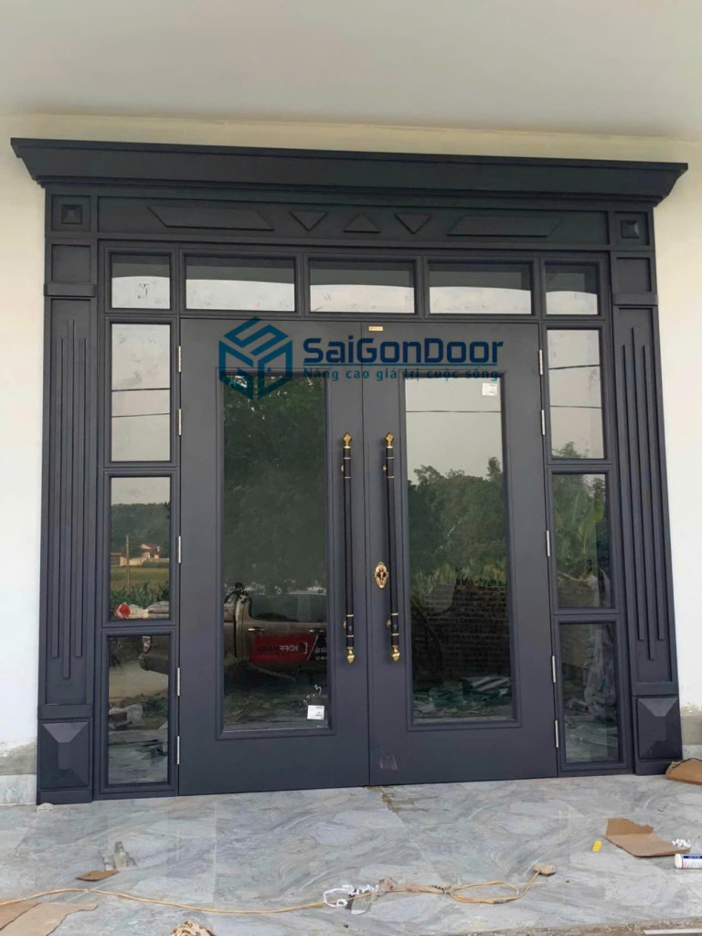 Thiết kế khung thép chắc chắn kết hợp ô kính lấy sáng giúp bộ cửa không chỉ bền bỉ mà còn tạo cảm giác thông thoáng, mở rộng không gian một cách tinh tế.