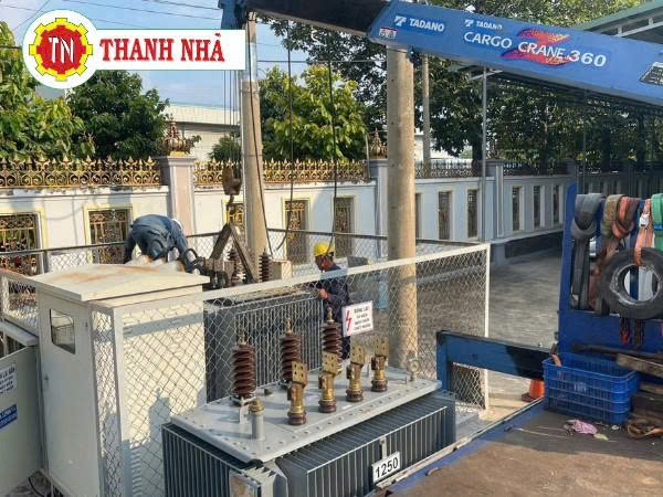 Lắp đặt trạm biến áp và tủ điện: Nâng hạ và đưa máy biến áp vào bệ móng, định vị các tủ bảng điện trung thế, hạ thế vào đúng vị trí trong phòng kỹ thuật với độ chính xác đến milimet.