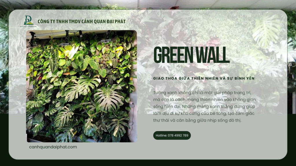 Trong nhịp sống đô thị hiện đại, tường xanh – vườn đứng là giải pháp lý tưởng giúp mang thiên nhiên vào không gian sống và làm việc. Những mảng xanh thẳng đứng không chỉ tạo điểm nhấn thẩm mỹ mà còn giúp giảm nhiệt, thanh lọc không khí, mang lại cảm giác thư giãn và cân bằng.