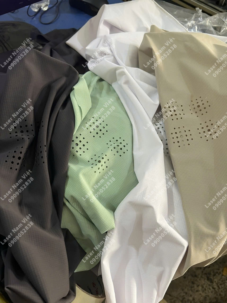 Laser Nam Việt nhận gia công đục lỗ laser trên áo, quần giúp sản phẩm thoáng mát hơn – nhẹ hơn – mặc dễ chịu hơn, đặc biệt phù hợp cho thời trang thể thao và thời trang mùa nóng.