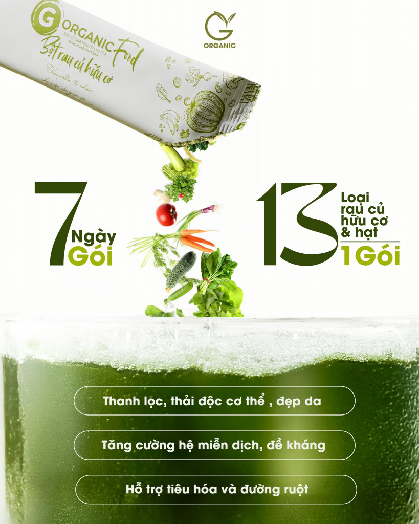Chỉ với 1 gói bột rau củ hữu cơ mỗi ngày sẽ giúp bạn THANH LỌC CƠ THỂ + THẢI ĐỘC + TĂNG ĐỀ KHÁNG