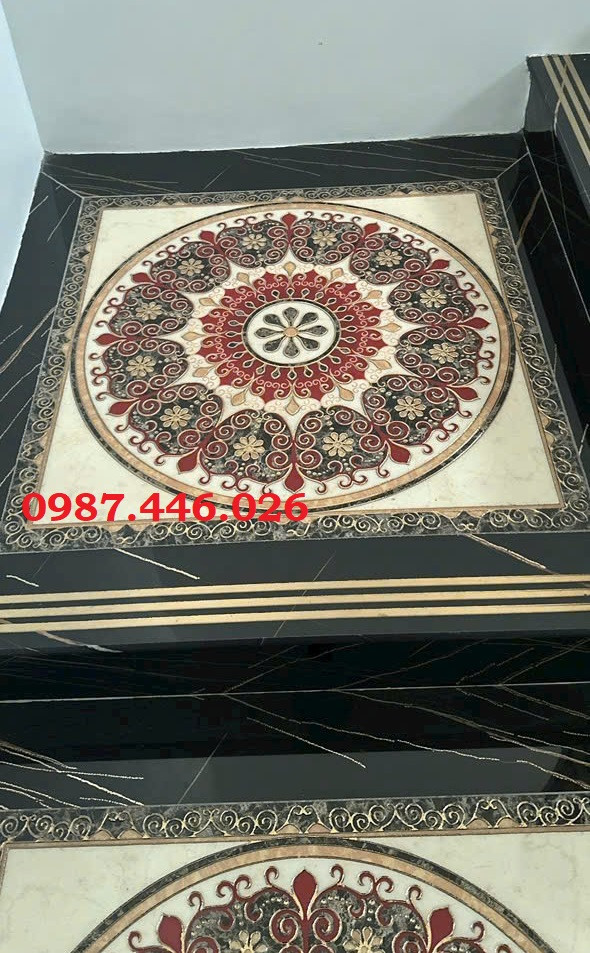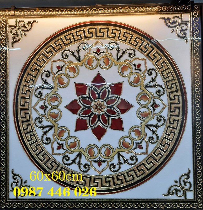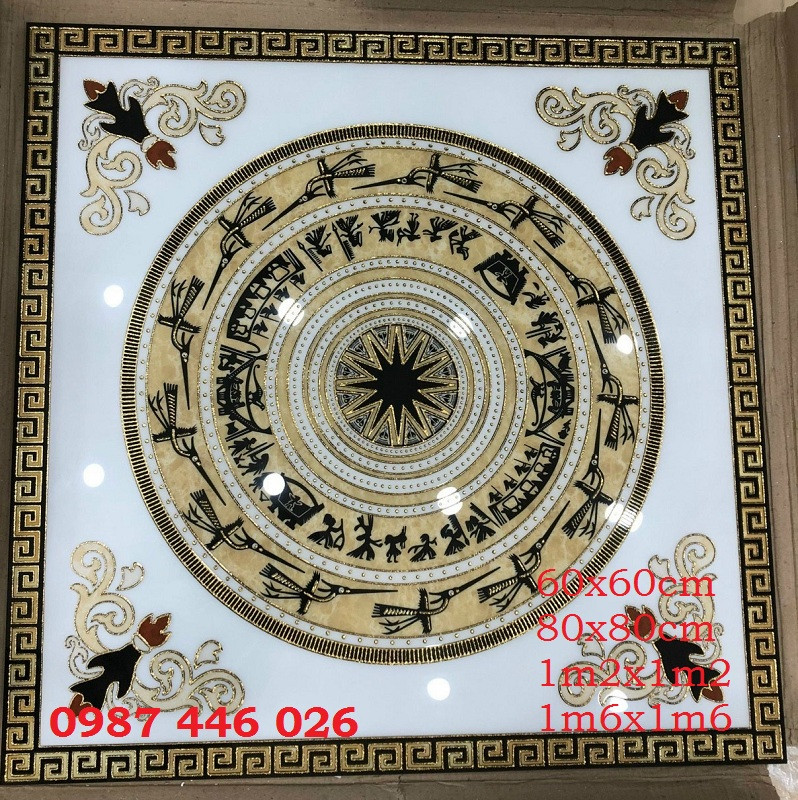 - Chất liệu: Gạch granite mặt men vi tinh khắc vàng