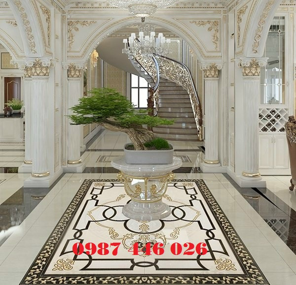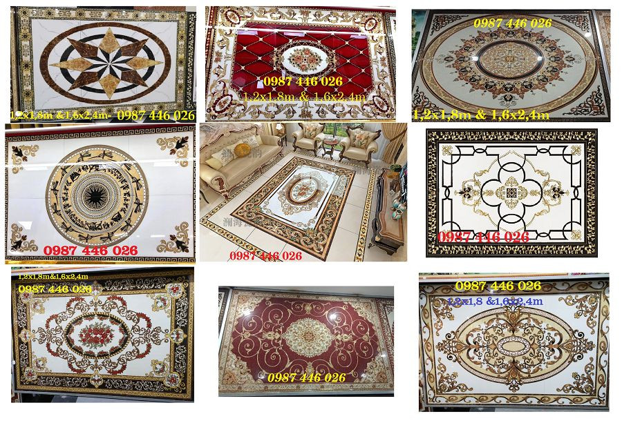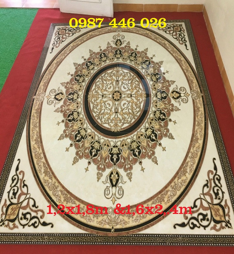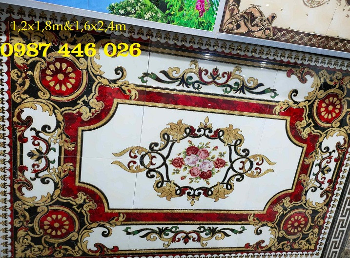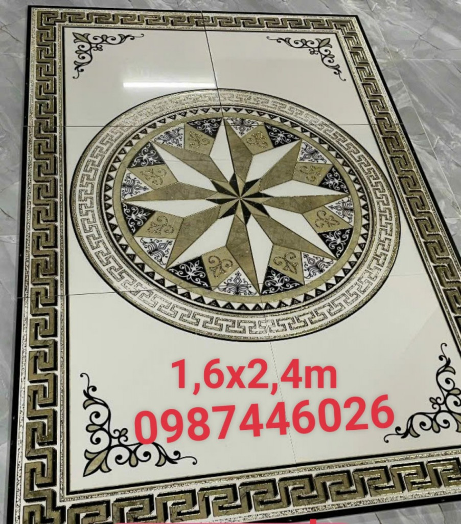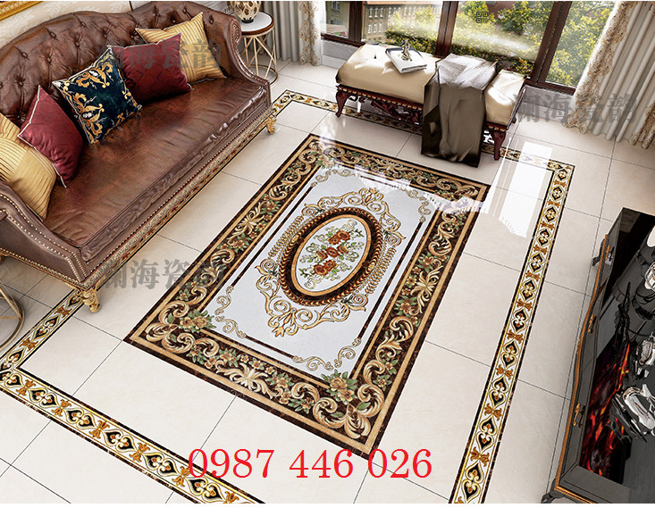 - Chất liệu: Gạch granite mặt men vi tinh khắc vàng