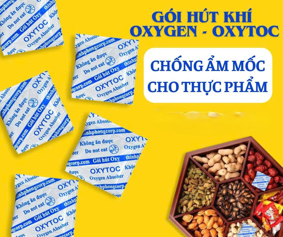 Gói hút oxy OXYTOC là giải pháp chống mốc bánh mứt Tết từ bên trong, giúp kiểm soát oxy hiệu quả mà không cần dùng chất bảo quản.