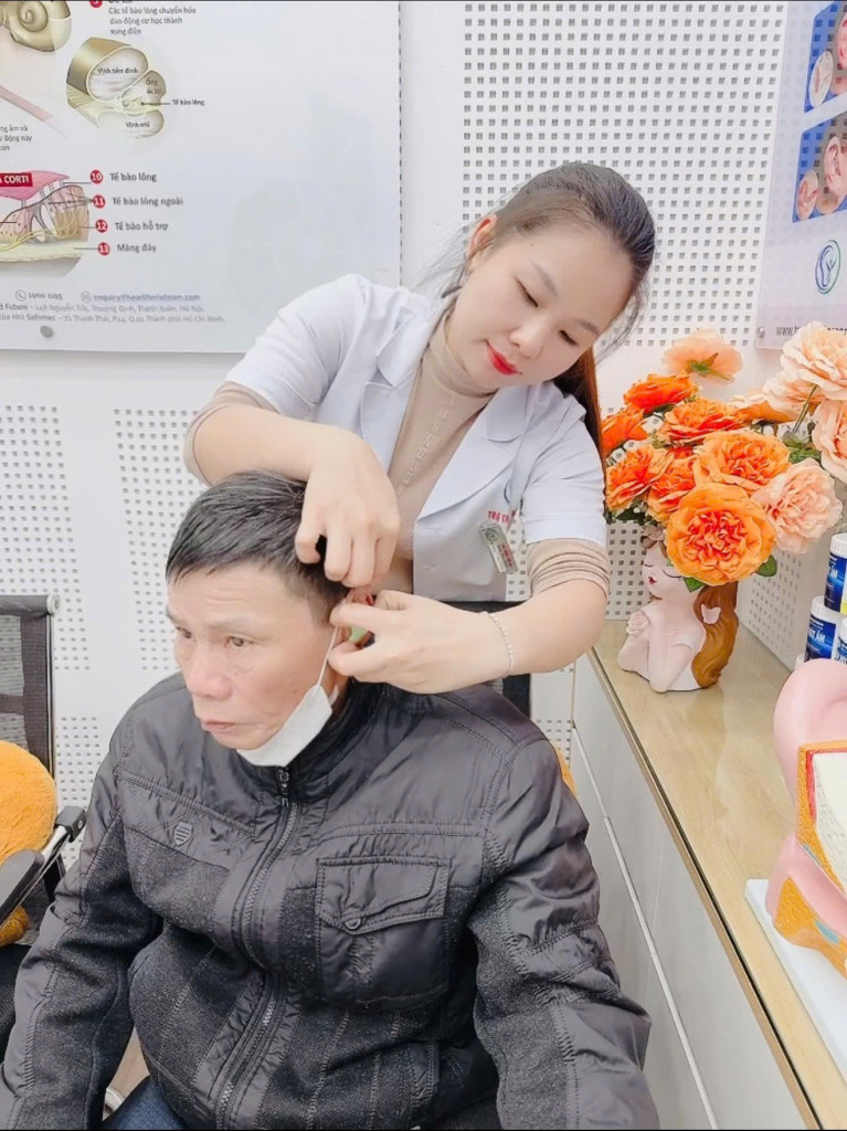 Nhờ sự giới thiệu tin tưởng của người quen, các con đã đưa bác đến Trợ Thính Tâm An Thái Bình để được đo thính lực và thử máy một cách bài bản, kỹ lưỡng.