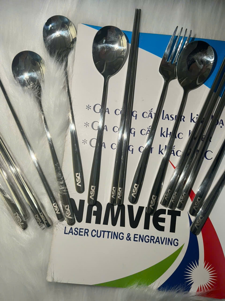KHẮC LASER LÊN MUỖNG – ĐŨA INOX | SẮC NÉT – BỀN ĐẸP 🍴