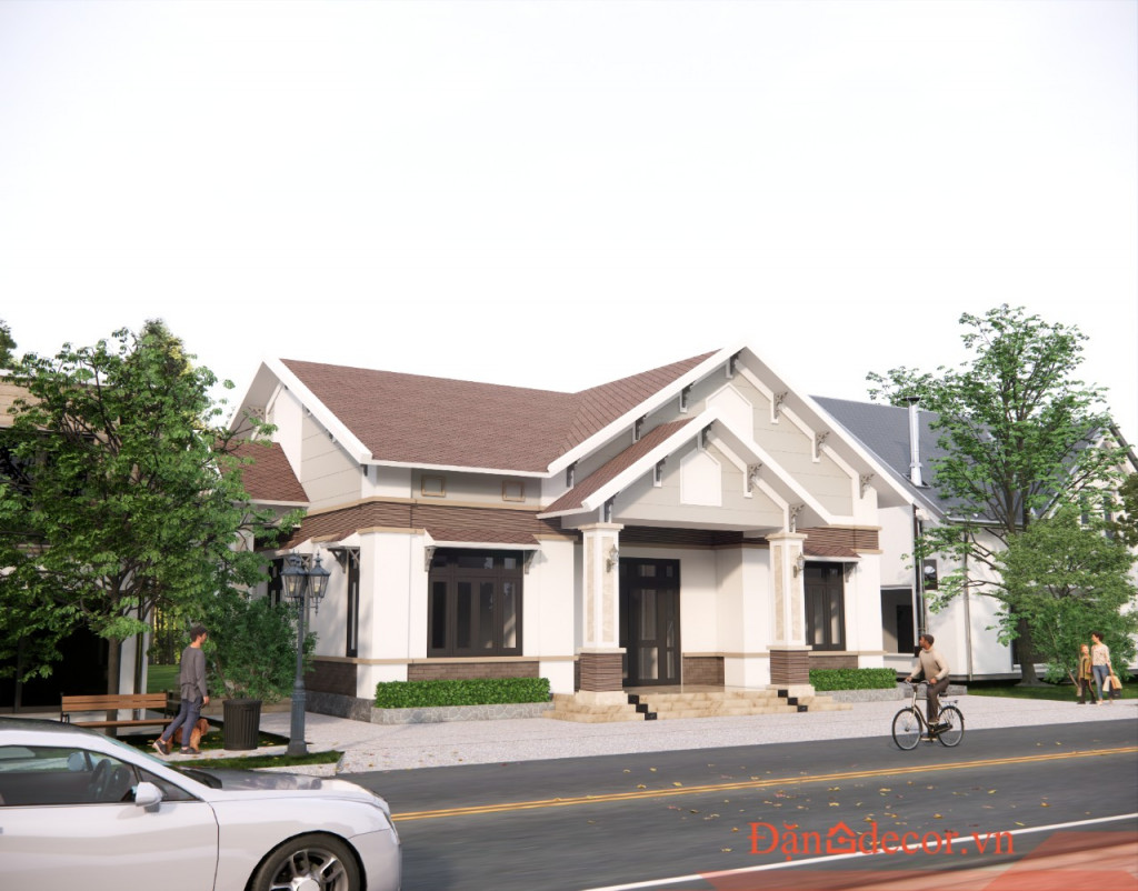 - Ý tưởng thiết kế: Nhà Mái Thái sân vườn, có đủ 3 phòng ngủ cho 3 thế hệ. Có phòng thờ cúng tổ tiên, 1 phòng khách để sinh hoạt chung, bếp và phóng ăn. Có mảnh vườn nhỏ phía sau trồng cây ăn trái
