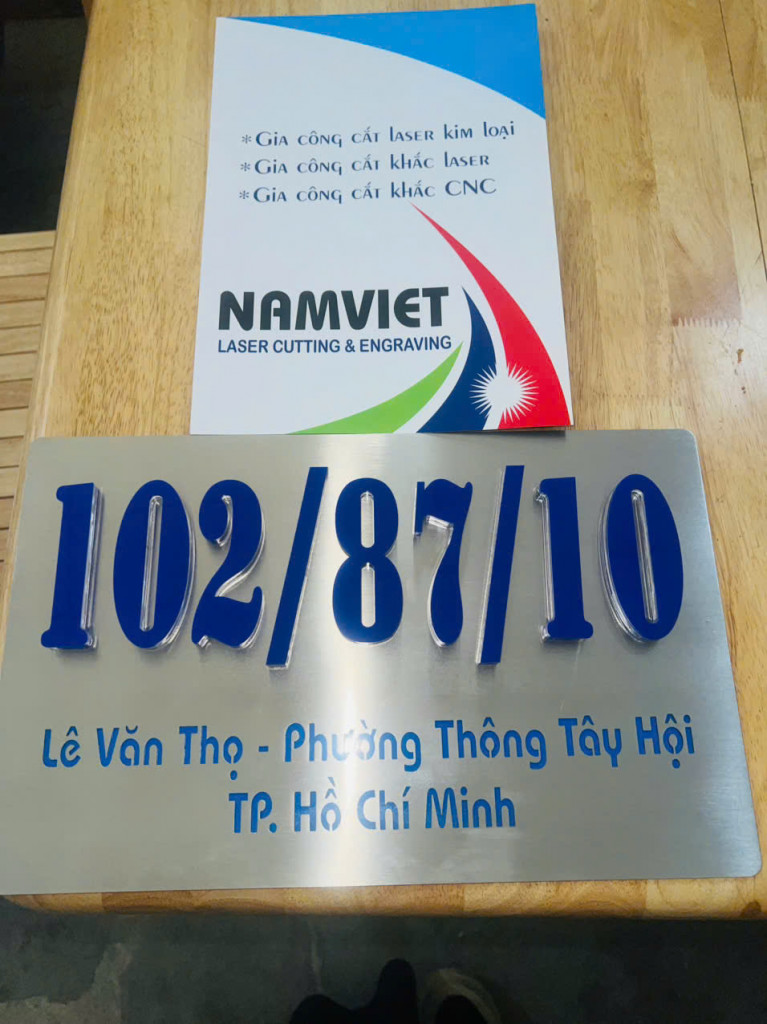 Xưởng Laser Nam Việt chuyên gia công sản xuất bảng hiệu, bảng số nhà bằng inox – mica cho nhà ở, cửa hàng, công ty, showroom.