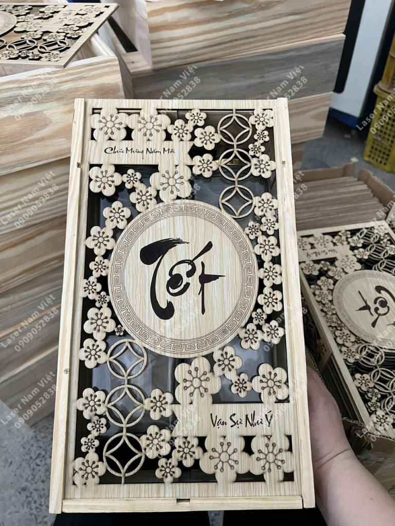 Xưởng Laser Nam Việt chuyên sản xuất – gia công hộp quà gỗ Tết với mẫu mã đa dạng, thiết kế theo yêu cầu doanh nghiệp và đại lý quà tặng.