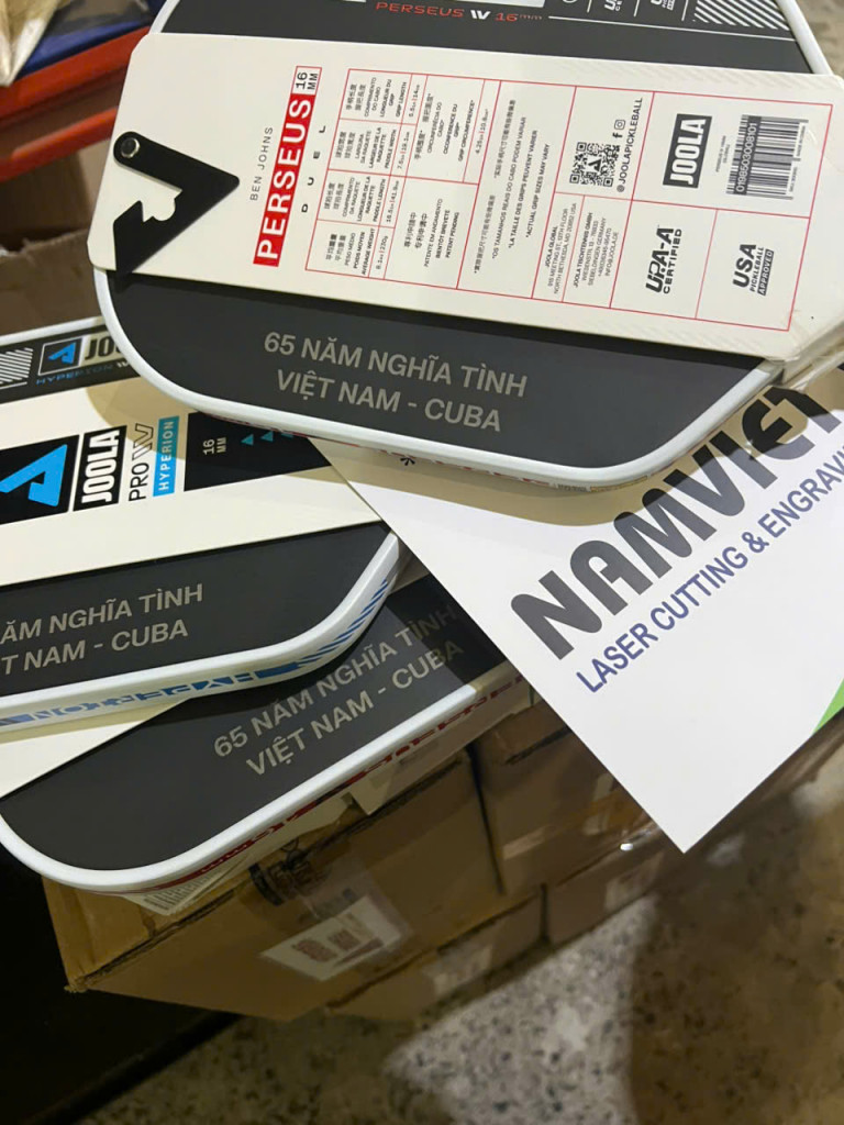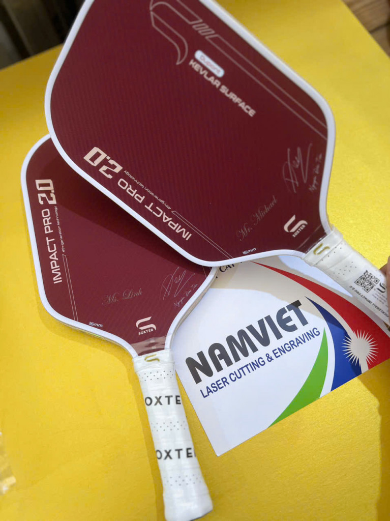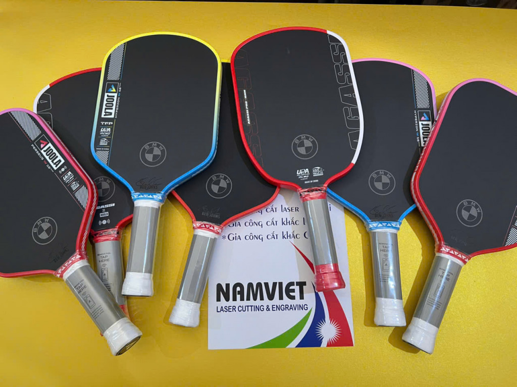 Xưởng Laser Nam Việt nhận khắc laser lên vợt pickleball theo yêu cầu cho cá nhân, đội nhóm, câu lạc bộ, giải đấu.