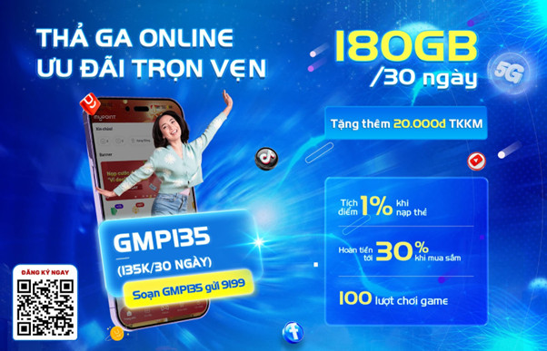 Với mức giá chỉ 135.000 đồng/tháng, người dùng có thể mở khóa cả vũ trụ kết nối mượt mà và hàng loạt ưu đãi hấp dẫn đi kèm thích mê khi đăng ký gói cước GMP135: