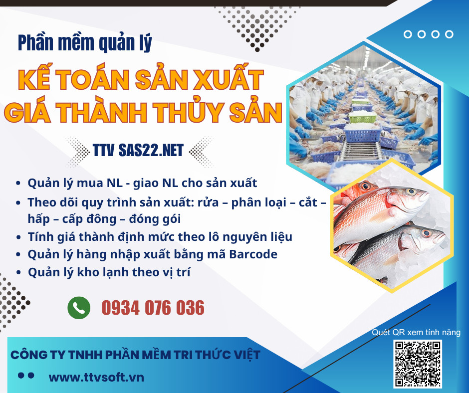 Phần mềm quản lý kế toán sản xuất, tính giá thành chế biến thủy sản