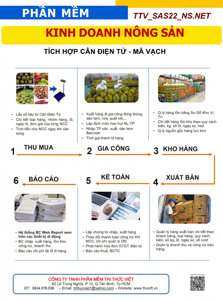 Phần mềm quản lý kinh doanh nông sản của Tri Thức Việt giúp doanh nghiệp kiểm soát xuyên suốt quy trình thu mua – gia công – chế biến – xuất bán nông sản trên một hệ thống đồng bộ, chính xác và minh bạch, đáp ứng đúng đặc thù vận hành của ngành nông sản