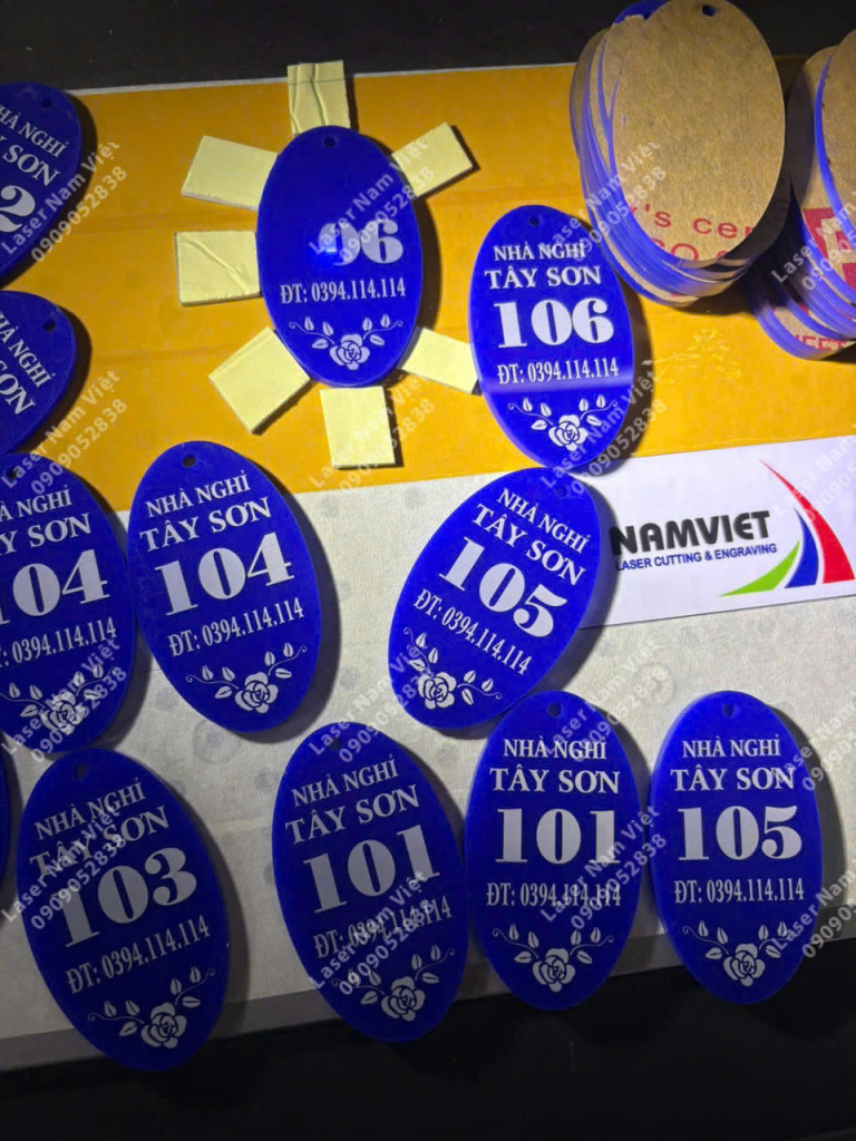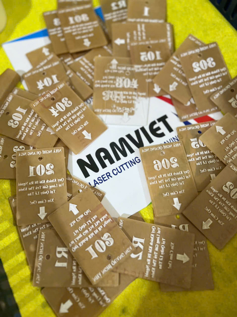 Xưởng Laser Nam Việt nhận sản xuất & khắc laser số phòng – số tủ cho:
