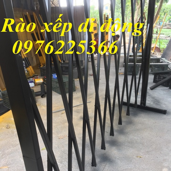 Hàng rào xếp di động có bánh xe hay được gọi là rào xếp chữ T, hàng rào xếp sắt là loại hàng rào di chuyển dựa vào sức người kéo đẩy, đặt vào các vị trí cần thiết. Hầu hết các hàng rào xếp di động đều có thiết kế giống nhau về kiểu dáng thân rào. Các thanh được đan chéo theo hình zích zắc, nhờ đó mà tạo nên sự linh hoạt trong quá trình di chuyển, kéo dãn.