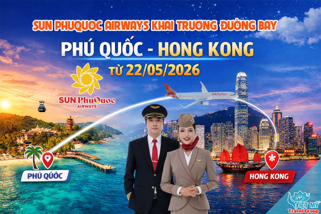 Sun PhuQuoc Airways chính thức khai thác đường bay quốc tế Phú Quốc (PQC) – Hong Kong (HKG) từ ngày 22/05/2026, đánh dấu bước phát triển quan trọng trong chiến lược mở rộng mạng bay. Vé đã được mở bán từ 02/04/2026, giúp hành khách dễ dàng lên kế hoạch cho mùa du lịch hè, công tác hoặc thăm thân.