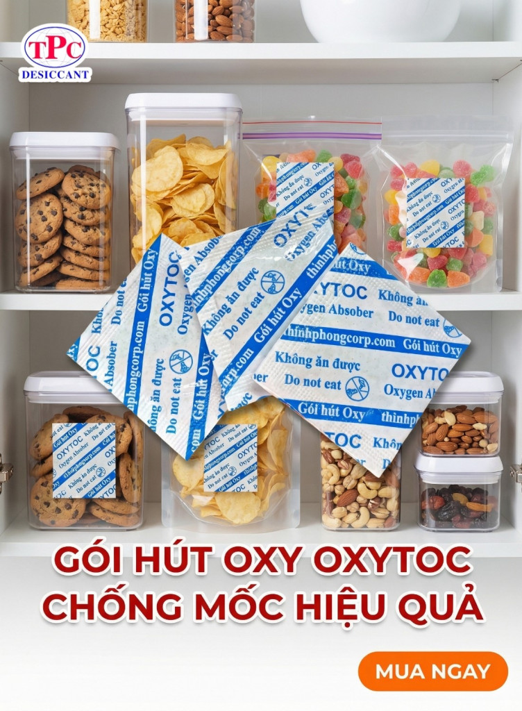 Gói hút oxy OXYTOC giúp loại bỏ oxy từ bên trong, làm gián đoạn môi trường phát triển của nấm mốc và quá trình oxy hóa.
