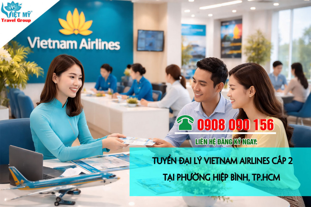 Vietnam Airlines chính thức triển khai chương trình tuyển đại lý cấp 2 tại phường Hiệp Bình, TP.HCM, mở ra cơ hội hợp tác dành cho cá nhân và đơn vị kinh doanh vé máy bay. Tham gia hệ thống đại lý, đối tác được khai thác vé nội địa và quốc tế của Vietnam Airlines, hưởng chính sách chiết khấu rõ ràng, hỗ trợ nghiệp vụ – xuất vé – chăm sóc khách hàng bài bản.