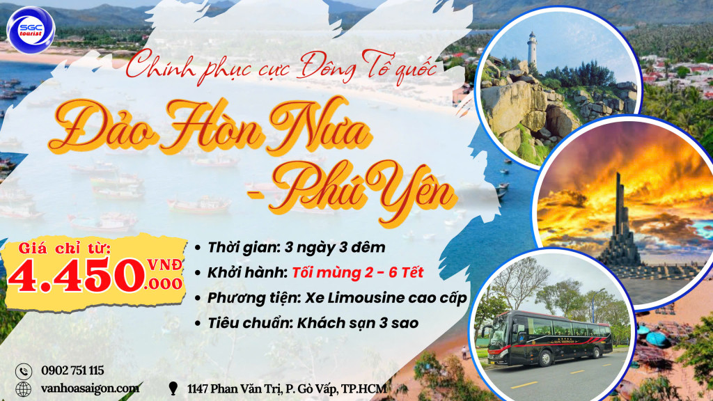 Quý vị đang xem nội dung tin rao "Tour Tết Âm 2026 - Đảo Hòn Nưa - Phú Yên 3N3Đ - SGC Tourist" -