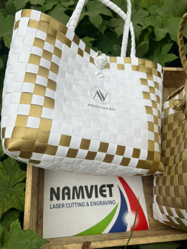 Túi xách nhựa tưởng đơn giản nhưng qua tay khắc laser là khác liền 💥